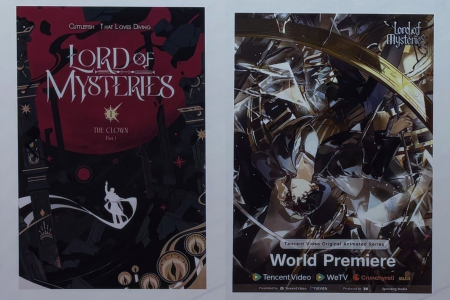 左为《诡秘之主》英文第一册书影,右为《诡秘之主》同名动画海报。