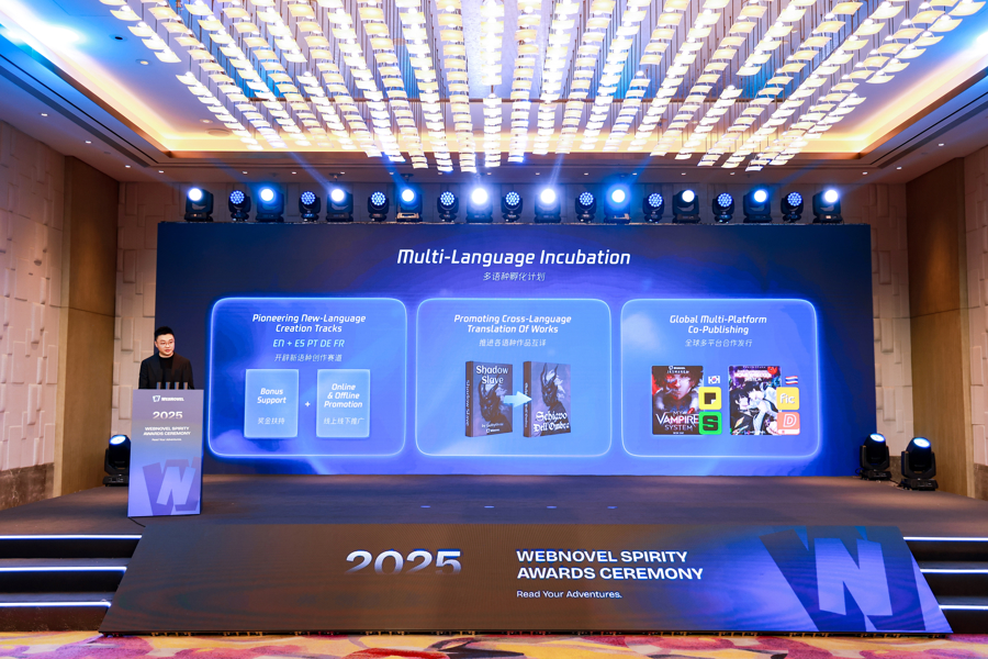 随着IP产业链国际化快速发展,文化共创的深度与广度在不断扩展。以WSA为例,历届获奖作品中,超七成作品已进入IP开发。由往届获奖作品《我的吸血鬼系统》改编的有声书播放量达11亿、漫画也已上线。2025年WebNovel及WSA还增设了“年度之书”“漫画改编奖”等荣誉,获奖作品可直通漫画、有声及短剧等多元改编,更多的文化讨论将会被激发。