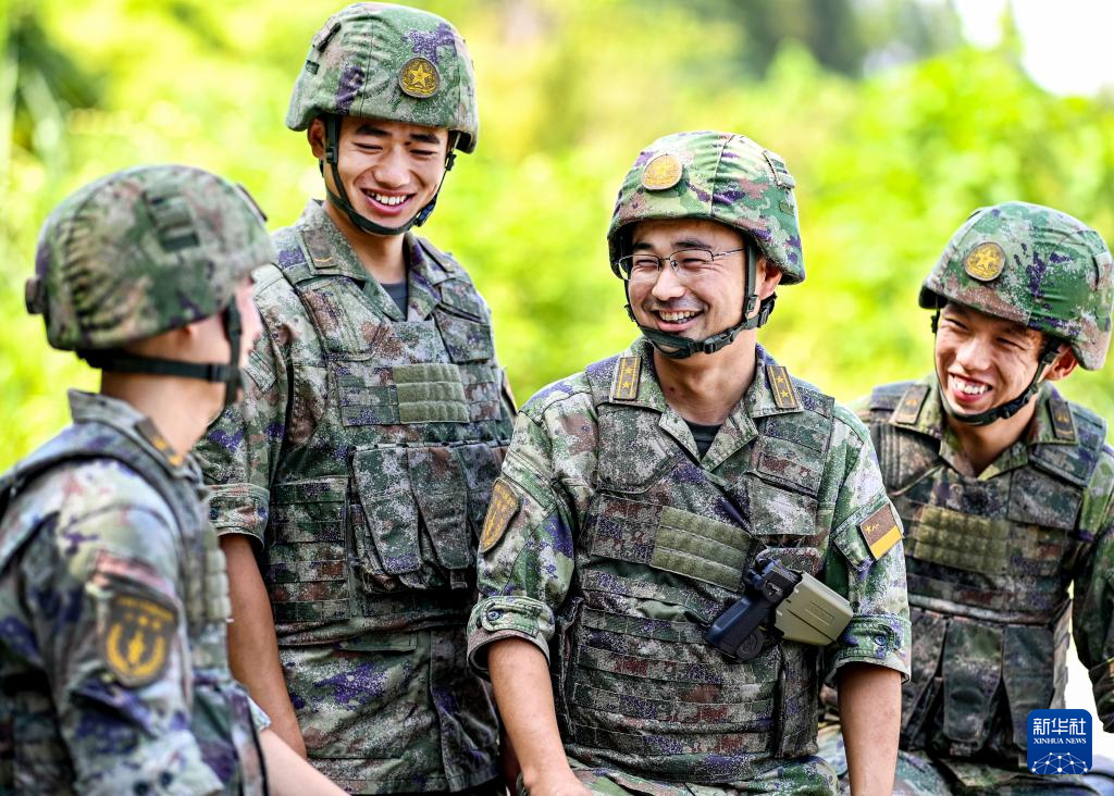 火箭军某旅发射二营干部骨干利用训练间隙与战士谈心(资料照片)。新华社发(刘明松摄)