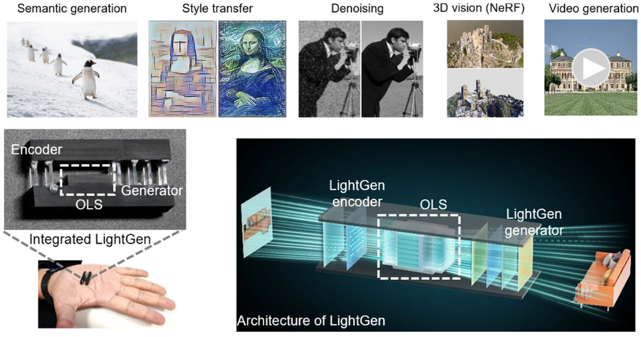 从一句话生成一张图,到几秒钟生成一段视频,生成式人工智能正在走向更复杂的真实世界应用。模型越大、分辨率越高、生成内容越丰富,对算力与能耗的需求就越惊人,后摩尔定律时代,面向未来的研究焦点转向光电计算等“下一代算力芯片”。如何让下一代算力光芯片能运行复杂生成模型,成为全球智能计算领域公认的难题。