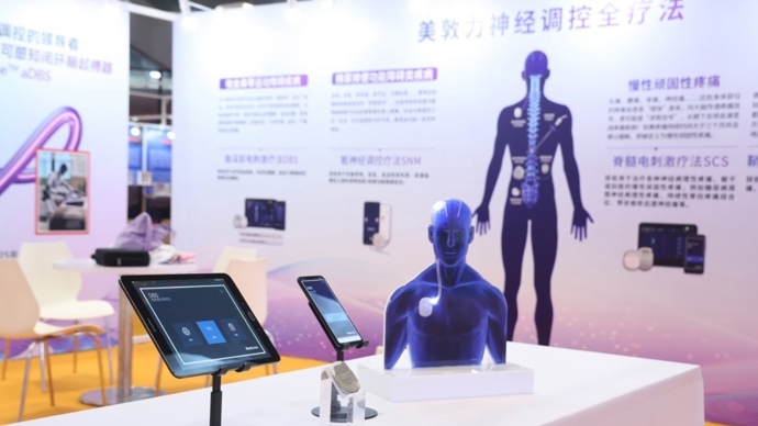 在“进博首发新品汇”展区,第八届进博会的亚太首展——美敦力全球首款可充电闭环脊髓神经刺激器Inceptiv再度亮相。研究表明,在我国有超过3亿慢性疼痛患者,且这一数字正以每年1000万到2000万的速度持续扩大。Inceptiv能够“倾听身体发出的声音”,实时感知患者不同动作下脊髓生物信号的变化并实时自动调整刺激,可以帮助慢性顽固性疼痛患者和饱受痛性糖尿病周围神经病变困扰的患者改善疼痛、提升生活质量。该产品凭借其革命性设计,曾荣获《时代》杂志2024年“最具突破性创新”和2025年“慢性疾病治疗解决方案”爱迪生奖称号,在进博会期间获得了极高的关注度,并荣膺了“2025年度进博十大展品”。