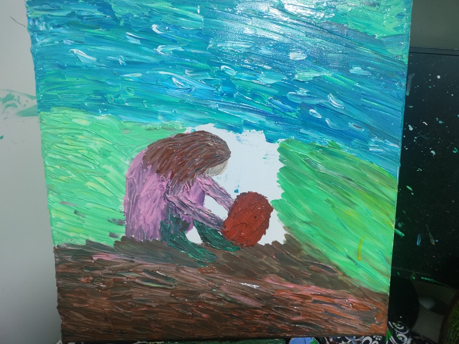 有着图案的尚潮湿的模子,我们放在窗台上晾晒,让阳光照射,慢慢地就干了,质地变得更硬,原土的红色也更深了。