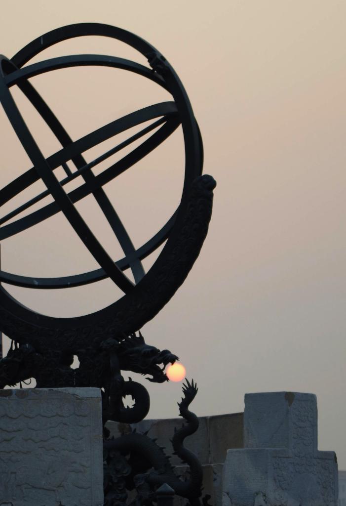 这是2013年12月22日在北京古观象台拍摄的冬至落日。新华社发(郭求达 摄)