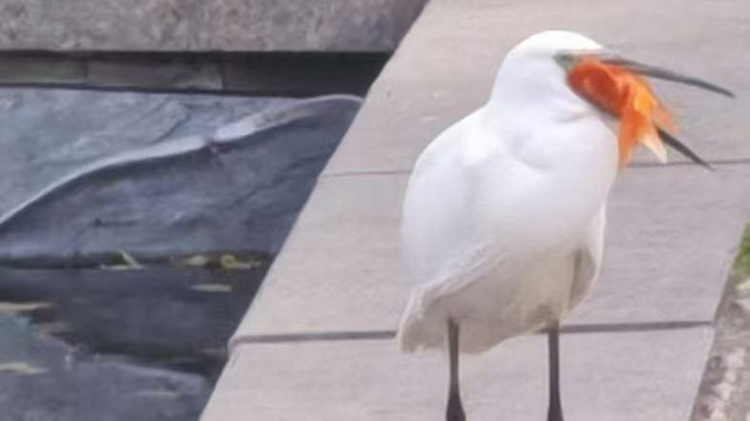 让居民感到新奇的是,这只白鹭还是一个“捕鱼高手”。记者从刘先生今天下午拍摄的照片上看到,白鹭通体覆盖着白色的羽毛,一对“长脚”十分醒目。只见它略略歪着头,嘴里叼着一条红黄相间的锦鲤,似乎还颇有几分得意之姿。“景观池里有水草和鱼,鱼是物业投放的。它的嘴长而尖,下午我看到它稍稍观察,电光火石之间就从池子里叼走了一条鱼,大摇大摆地走在岸边。我马上把这一幕拍了下来。”