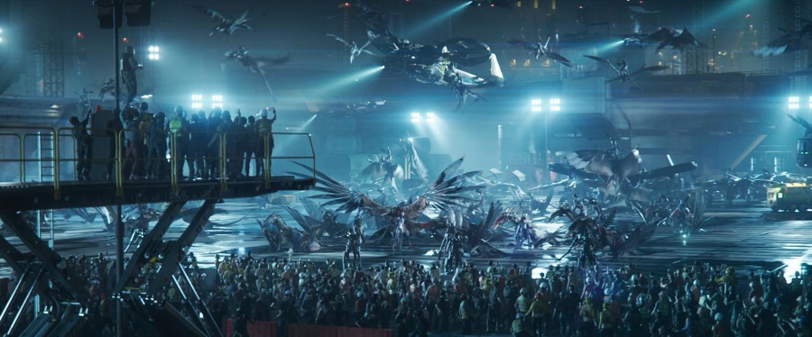 影像同样是无力的。2022年的《水之道》就不再有《阿凡达》摧枯拉朽的能量,到了《火与烬》,影片三分之二的时间在“复习”《阿凡达》和《水之道》,不再有刷新感官体验的视听,甚至新的银幕景观也显得勉强。女主角奈特莉闯进人类基地营救杰克·苏利,骑着飞龙的潘多拉星原住民进入类似“终结者”的机械后现代世界,这个热闹的段落让70岁卡梅隆和30岁卡梅隆相逢在大银幕。导演在50岁出头的年纪创造了潘多拉星球,近20年过去,他把职业生涯前20年制造的经典景观在他独创的阿凡达宇宙里陈列,也许,未来将有泰坦尼克号出现在潘多拉星的海平面。