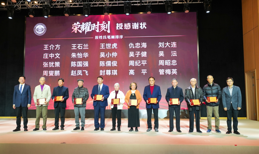 中国民办教育协会常务副会长胡卫、市教委副主任杨振峰为教育前辈颁发感谢状