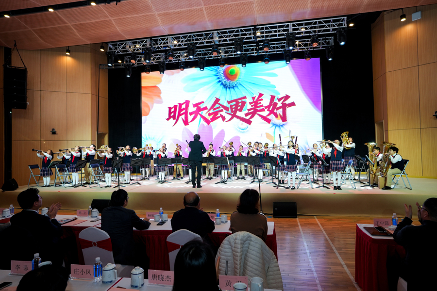 上海市民办丽英小学学生乐团带来管乐演奏《明天会更美好》