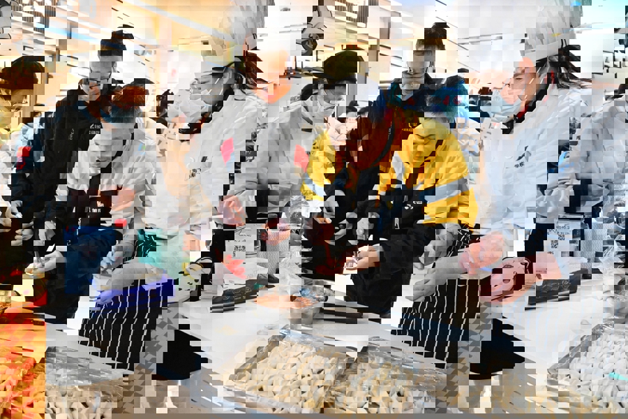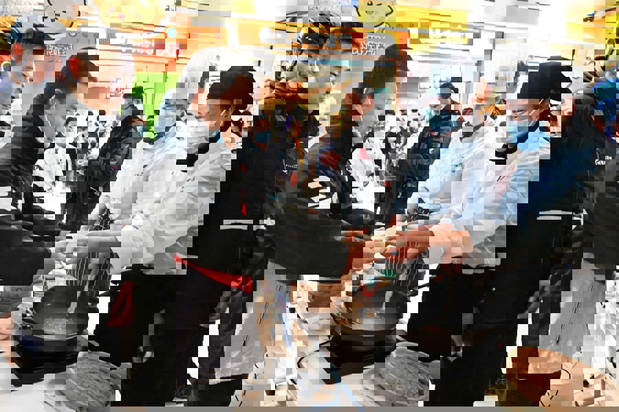 万科商场餐饮商户也积极参与到活动中。顺风臻品菜的负责人表示:“新就业群体每天为社区服务,我们也想通过这次活动尽一份力,用一碗热饺表达感谢。”