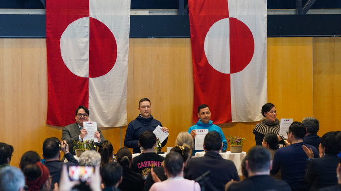 3月28日在格陵兰岛首府努克拍摄的新政府成立现场。