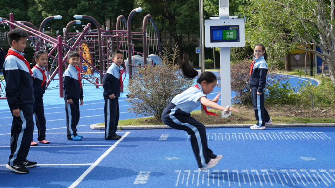 与此同时,针对体测成绩有待提升的学生,体育老师会引导他们前往配备百余种训练项目的“总动员·神奇智慧谷”,接受个性化指导。三年级的小宇因脚伤不能跑跳,他在“益智游戏巷”学会了象棋。“以前,如果受伤了,大课间只能坐着看,现在我也是参与者了。”