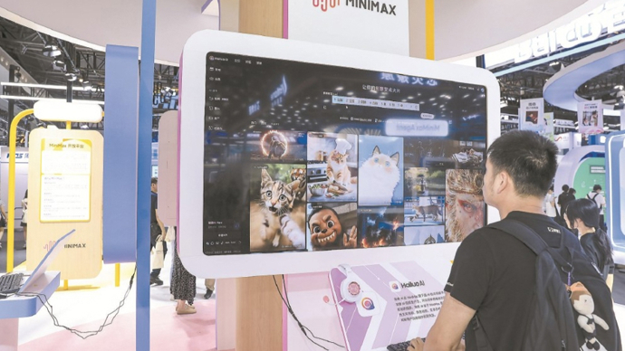 2025世界人工智能大会上,观众体验MiniMax旗下AI创意视频平台海螺AI。视觉中国