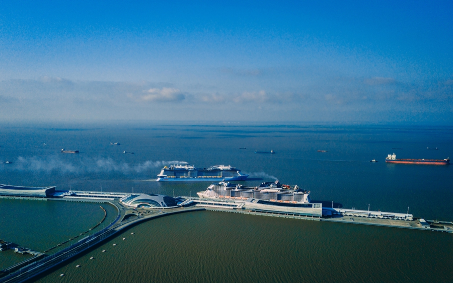 图为吴淞口国际邮轮港,今年前三季度,靠泊邮轮177艘次,占全国市场六成。/采访对象提供