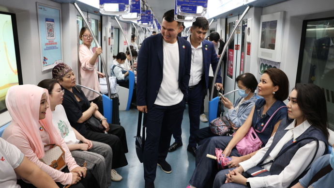 哈萨克游客体验上海地铁。 李茂君 摄