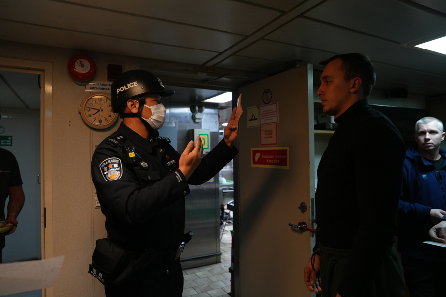 由于俄罗斯海蟹对水质和运输温度要求极高、存活时间短,上海边检总站崇明边检站提前介入,主动对接船舶代理与码头运营方,详细了解船舶动态、通关需求及装卸计划,专门开通鲜活产品出入境边检“快捷通道”。船舶靠港后,边检人员立即登轮,高效完成入境查验手续,实现“零等待”通关,全力保障这批生鲜货物第一时间进入市场。