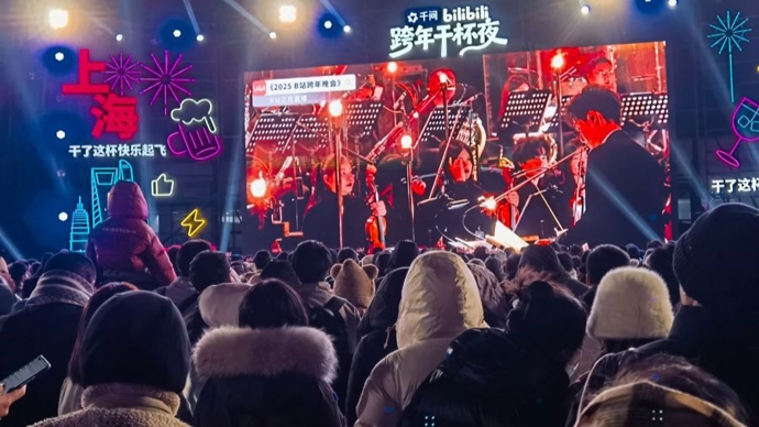 场地内架设的高清大屏上,正同步直播B站跨年晚会。市民游客时而紧盯屏幕为喜爱的嘉宾呐喊,时而参与现场互动游戏,沉浸式感受线上线下同频狂欢的独特魅力。
