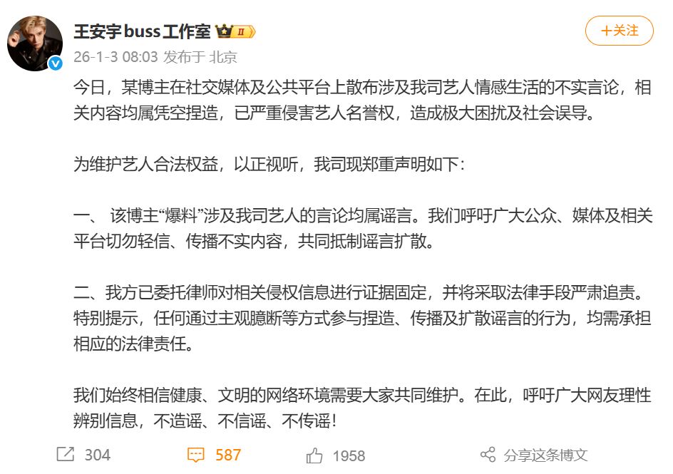 对此,众多艺人工作室1月3日凌晨密集回应。