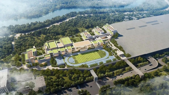 项目位于余杭区杭州西动车所盖板之上,临近地铁19号线苕溪站,是一座名副其实的“空中校园”。根据规划,学校总建筑面积约88690平方米,将建设包括教学楼、综合楼、体育馆、食堂、报告厅等在内的完备设施,致力于打造一个功能合理、舒适宜人的现代化校园环境,充分满足未来师生的教学与成长需求。