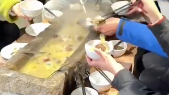 近日,湖南永州一餐馆推出“石槽火锅”,引发网友热议。不少网友调侃:像极了小时候家里的“猪槽子”。