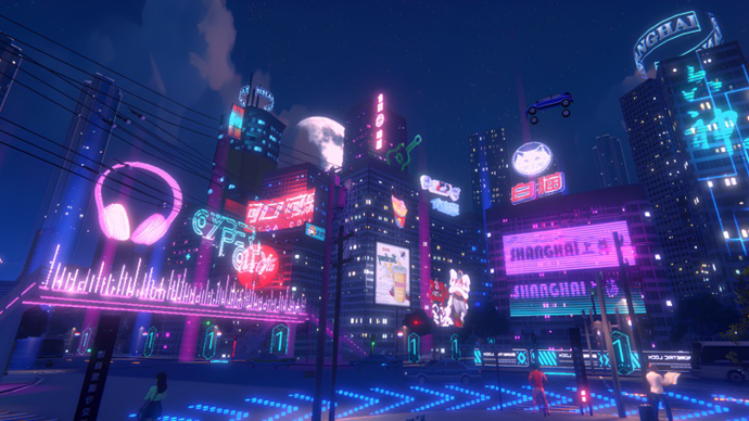 步入体验空间,戴上轻盈的VR眼镜,地铁呼啸启动,载着你驶入时光隧道。列车到站,眼前已是夏夜微醺的弄堂口,耳边传来熟悉的上海方言:“阿尼头,侬帮帮忙寻一记‘香菜’好(口+伐)?”——那是十岁男孩阿尼头被邻居嗲妹妹拜托寻找走失猫咪的一幕。而这场看似寻常的寻猫之旅,悄然串起一幅鲜活的时代群像:文艺青年卷毛哥默默注视着即将出国的嗲妹妹;服装店老板莉莉姐与创业青年小宁波在电话亭旁碰撞出电商萌芽;表哥长脚则在时代洪流中摸索自己的出路……