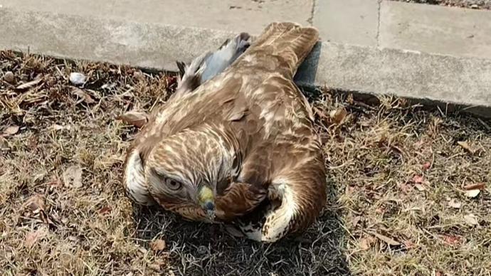 1月7日上午,陈家镇派出所再次接到群众张先生报警,称其发现一只翅膀受伤、疑似保护鸟类“老鹰”。民警朱兴洲迅速抵达,发现该只“老鹰”羽毛蓬松、精神不振,翅膀有明显羽毛缺失,飞行能力暂时丧失。