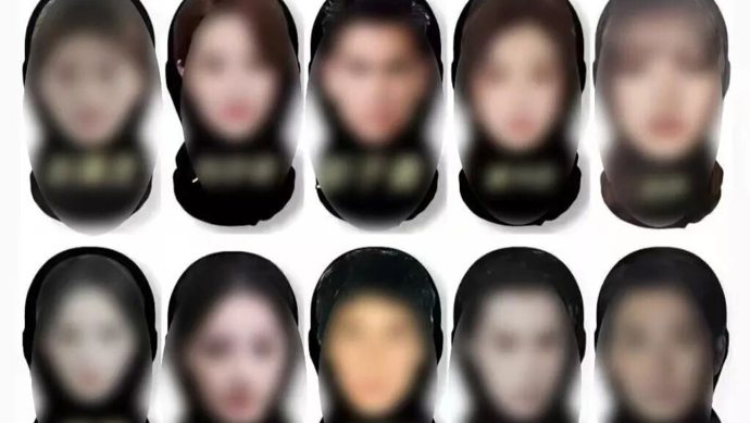 记者搜索社交平台发现,有不少主播在直播间内推销超写实的明星面纱头套。主播将外套的拉链拉紧,再戴上帽子,稍微调整面纱的佩戴角度,一张全新的面容便呈现出来,几乎可以以假乱真。直播间的背景墙铺满了各式各样国内外的明星脸作为展示,有主播还会刻意强调面纱头套的使用场景。