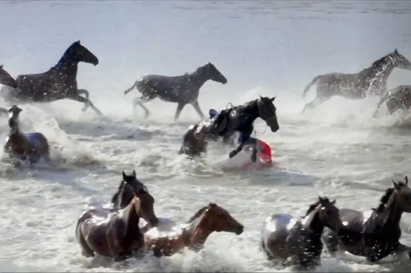 贺娇龙拍摄天马浴河时意外坠马
