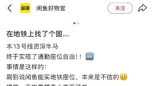 记者注意到,虽然闲鱼平台上已检索不到相关商品,但在小红书等社交平台,围绕“有偿代坐”的内容仍在流通。其中不乏带有官方认证标识的账号发布体验帖,用轻松甚至略带炫耀的口吻,讲述提前下单、到站对接、顺利入座的全过程,调侃“在地铁上找了个固搭”。 但无论是出于好玩跟帖的尝试,还是为了赚取少量报酬,这类行为本质上仍是对公共座位资源的提前占用与私下转让,与公共交通应遵循的公平使用原则并不相符。
