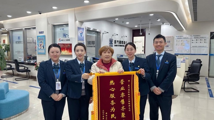 近日,上海市民黄女士将绣有“营业零售齐聚力,热心服务为民生”的锦旗送到厦门国际银行上海杨浦支行,锦旗背后承载着黄女士对厦这家银行的满心谢意。