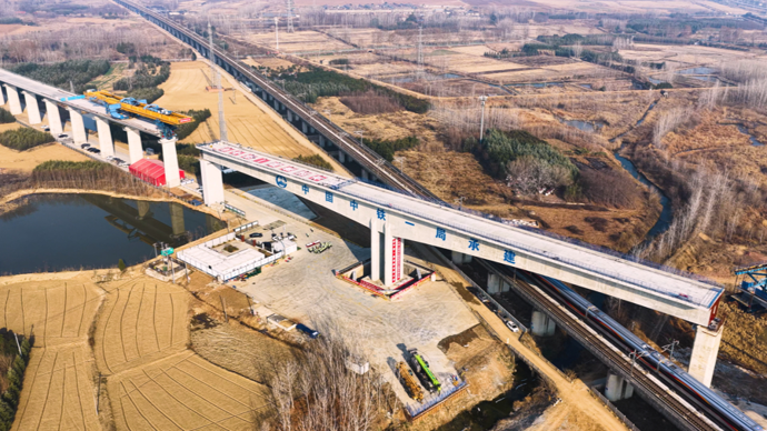 1月16日凌晨,在安徽省滁州市南谯区乌衣镇新建上海至南京至合肥高速铁路(以下简称沪宁合高铁)建设现场,由皖赣铁路安徽公司建设管理、中铁一局承建的跨京沪高铁特大桥2×100米预应力混凝土单T构梁顺利完成转体。这标志着华东地区最大跨度跨高铁单T构梁施工取得重大进展,为后续全线贯通和铺轨奠定了坚实基础。