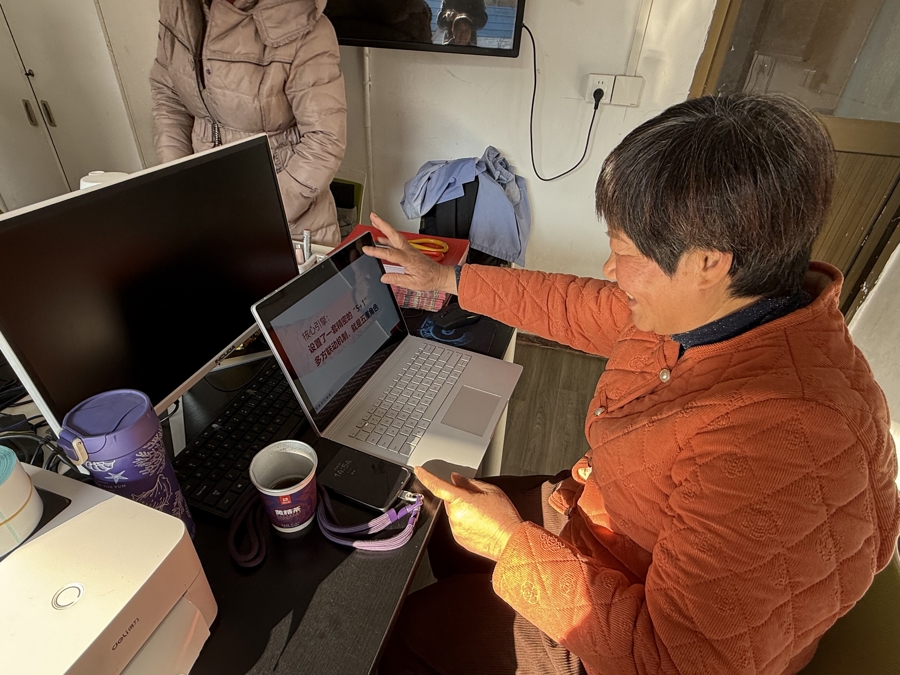 唐林珠今年65岁,加入志愿团队之前,她是一个只会用老人机、更没碰过电脑的农村妇女,如今,她不仅在青年志愿者的指导下学会了操作数据平台,还学会用电脑制图、独立制作简易的PPT,用手机拍照,打网约车等。“我以前想都不敢想,像我这个年纪的‘现代文盲’,有朝一日能掌握这些技能。我觉得自己特别棒。”