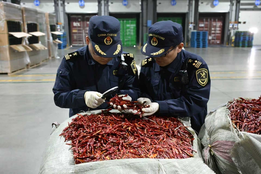 “谷斑皮蠹、四纹豆象、菜豆象……”近日,张晓欣反复熟悉海关总署公告中的检疫性有害生物名录。为迎接这“第一单”,他提前一周系统梳理了乌干达干辣椒可能携带的有害生物特征。“干辣椒的风险点主要在仓储性害虫,必须守好国门生物安全的第一道防线。”
