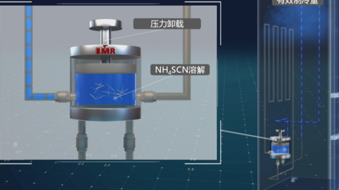 算力作为数字经济时代的关键基础设施,其高速发展背后是日益增长的能源消耗与散热需求。数据中心的冷却系统能耗占数据中心总用电的近40%,传统压缩机制冷方案不仅能耗大、排放高,且在应对高功率散热需求时面临换热效率瓶颈。研究团队在实验中发现,硫氰酸铵(NH₄SCN)溶液在压力变化下可以表现出惊人的热效应:加压时盐析出并放热,卸压后盐迅速溶解并强力吸热,室温下溶液温度可在20秒内骤降近30℃,在高温环境下降温幅度更大,远超已知固态相变材料性能。这一现象被命名为“溶解压卡效应”。该效应将制冷工质与换热介质合二为一:利用溶液本身流动性实现高效传热,同时通过溶解、析出过程提供巨大冷量,从而打破了长期以来困扰制冷领域的“低碳-大冷量-高换热”不可能三角关系。