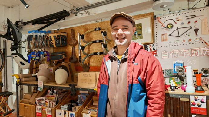 原标题:《在上海弄堂里,美国老王把自行车定制玩出新花样丨上海滩上洋掌柜》