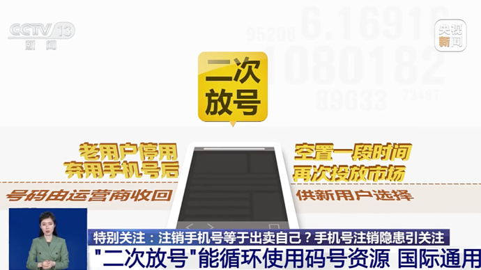 据介绍,“二次放号”能循环使用码号资源,是有效盘活闲置通信资源的必要手段,也是国际通用方法。但需注意的是,若原号主未及时解绑号码关联账户,可能被新用户登录,产生隐私和财产安全风险。而新用户也可能无法注册新账号,导致账户功能无法正常使用。