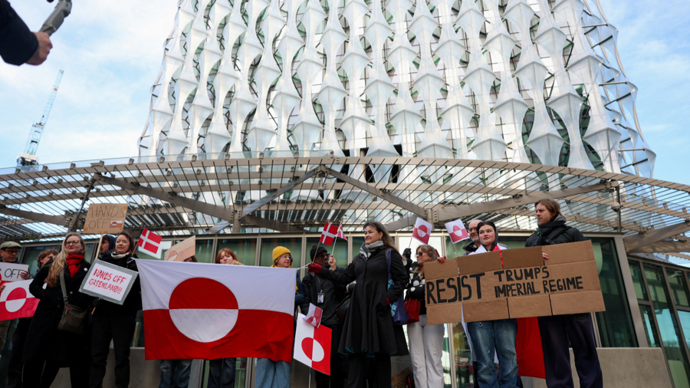 美国驻英国大使馆外24日举行“特朗普别碰格陵兰”抗议活动。图IC