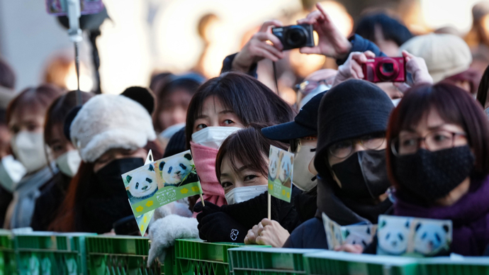 在熊猫与公众最后一次见面之前的几周,人们开始排起长队,促使动物园改用抽签方式售票。据东京都政府公布的数据,约有10.8万名民众争抢4400个参观名额,部分人甚至排队长达三个半小时,只为同熊猫做最后告别。