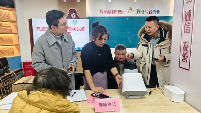 引人关注的是,本次活动还引入了“鹰瞳测试”服务。通过视网膜影像分析,仅需两三分钟,即可筛查青光眼、白内障等眼疾,并为高血压、糖尿病等慢性病提供风险线索。“以前在医院做要两三百元,现在小区里就能免费体验,太方便了!”夏阿姨高兴地说。
