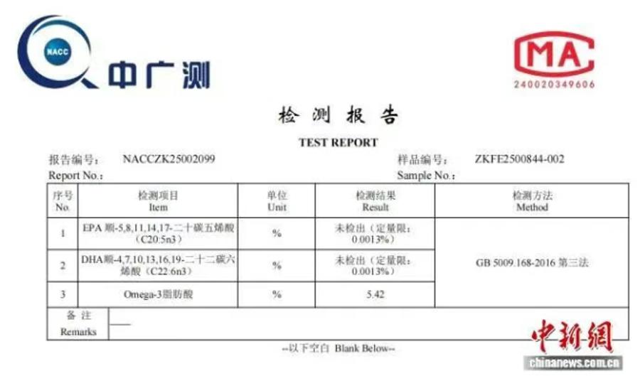 有产品EPA和DHA均为检出