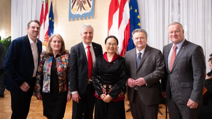 近日,维也纳市长米夏埃尔·路德维希博士(Dr. Michael Ludwig)在维也纳市政厅举行中国新春招待会,中国驻奥地利大使亓玫、中国常驻维也纳联合国和其他国际组织代表李松大使出席招待会。奥中嘉宾及奥地利侨界代表近两百人参加招待会。