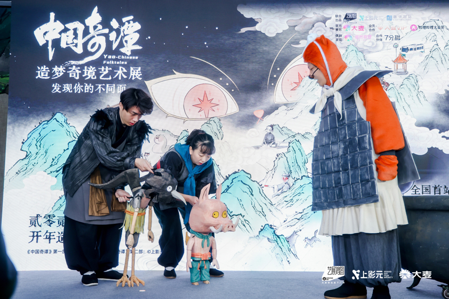 除了以展陈的形式立体化还原奇谭的角色和场景,大麦艺展鸿图还充分发挥自身作为平台型内容厂牌的资源优势和技术能力,通过“展中剧”表演、3D互动魔镜等形式,进一步丰富观众的现场体验。为展览特别打造的《中国奇谭·小妖怪的夏天》奇境互动偶剧,由大麦演出旗下戏剧内容厂牌当然有戏联合触感实验室共同推出。该剧由中国国家话剧院导演、编舞、演员刘晓邑担任艺术总监/导演/木偶设计,以真人偶剧为载体,结合灯光、影像、音乐等元素,诗意还原动画《小妖怪的夏天》。开幕式现场,奇境互动偶剧进行了亮相表演。刘晓邑介绍,此次偶剧所有的木偶均由手雕完成,“作为《中国奇谭》的忠实粉丝,我非常荣幸这次可以来导演《小妖怪的夏天》偶剧,也欢迎更多朋友来到展览、来到偶剧现场,和我们一起走进‘小妖怪的夏天’。”