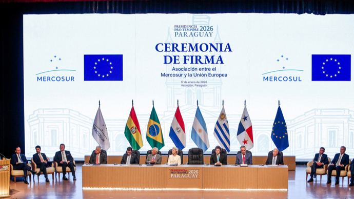 南方共同市场与欧盟在巴拉圭首都亚松森正式签署自由贸易协定。图源:GJ
