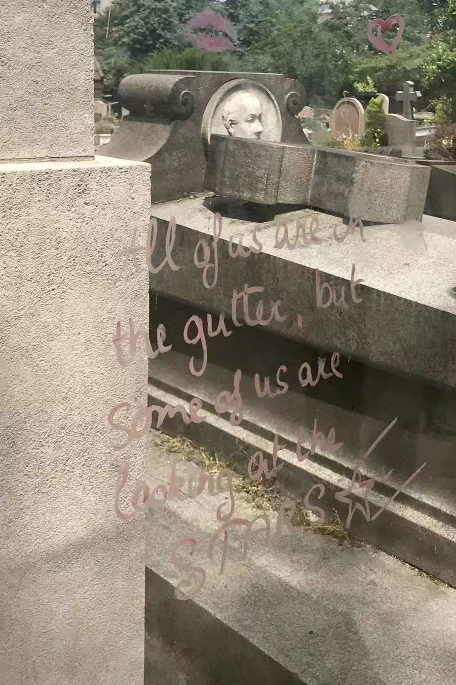 王尔德墓地前的口红唇印