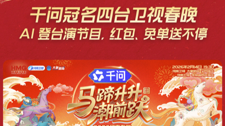 春节AI大战再添“一把火”,继官宣投入30亿元启动“春节请客计划”后,2月3日,千问APP宣布独家冠名东方卫视、浙江卫视、江苏卫视、河南卫视四大卫视马年春节晚会,并以AI形式深度参演春晚节目。全国观众在观看这四台春晚节目时,还可同步在千问APP参与互动、抢大额红包。