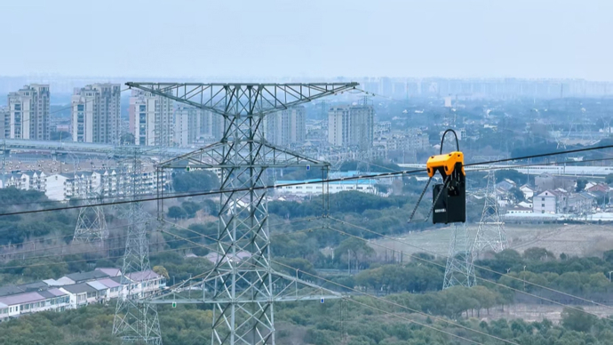 挑战没难住国网上海超高压公司。该公司此前已将带电作业机器人、智能巡检无人机、机器狗等新型装备相继投入生产实践。直面挑战,该公司又创新采用了“无人机吊装+地线修补机器人”的协同作业模式。作业现场,载重无人机将约13公斤的修补机器人精准吊装至70米高空地线上,机器人在地面人员远程操控下,沿线平稳行进至缺陷点,1小时不到就用专用卡箍对断股部位实施了加固。