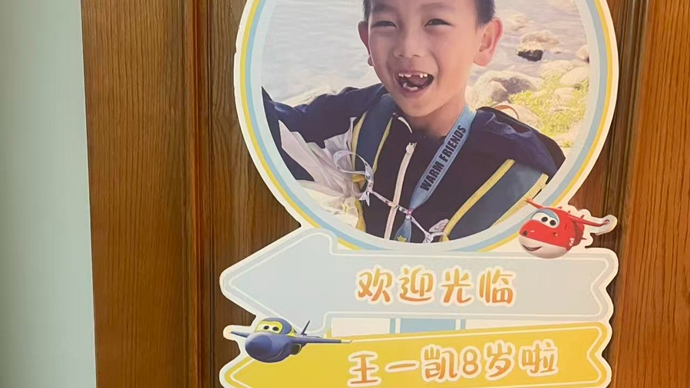 郭凯为儿子在大理过生日做的KT板,现存放在王一凯生前生活的房子内。朱雅文 摄