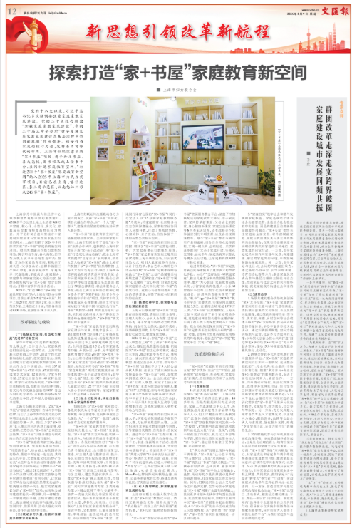 家庭是社会的基本细胞,重视家庭家教家风建设是中华民族的传统美德。作为一个超大型城市,如何回应新时代家庭现实性需求与发展性需求叠加交错的现实挑战,构建兼具温度与韧性的家庭支持系统,成为上海推进城市家庭建设的重要命题。上海市妇联推出的“家+书屋”家庭教育新空间项目,以空间重构为支点、以机制创新为驱动、以数智赋能为支撑,探索出一条家庭建设与城市发展同频共振的创新路径,为新时代家庭家教家风建设提供了鲜活的上海样本。