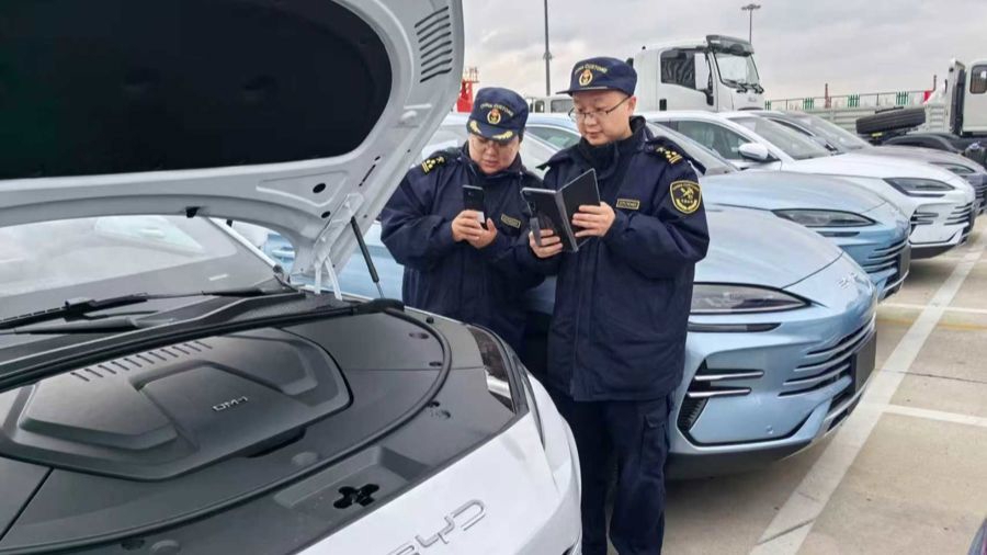 智慧海关“无感”护航,上海南港码头新能源汽车出口实现新年“开门红”。