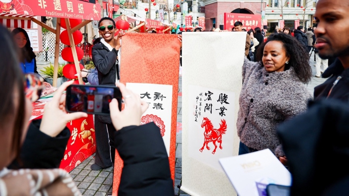活动现场的文化体验区,成为中外居民触摸东方年味的沉浸式空间。书法爱好者现场挥毫,一副副春联、一个个福字带着新春祝福跃然纸上;非遗传承人指尖生花,剪纸、中国结编织等传统技艺引得众人驻足观摩,不少外籍居民还亲手参与体验,感受传统工艺的独特魅力。