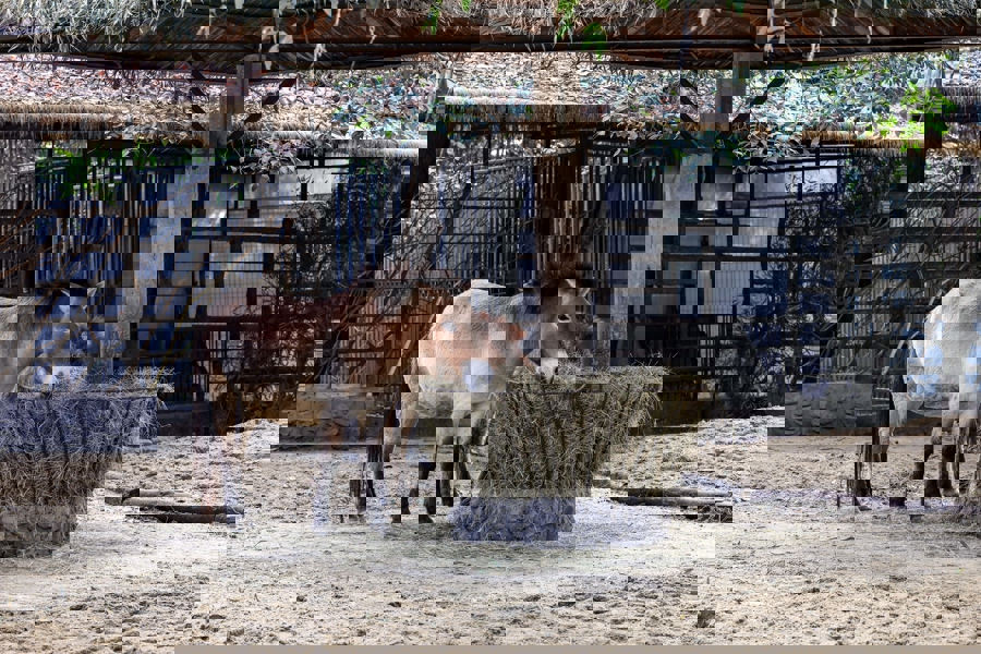 饲养野马并非易事。食草动物警惕性高,打扫和喂养时需两人安全操作。定期消毒展区时,要把野马关在过道内,确保安全无虞。为保护野马健康,定期驱虫也是必不可少的工作。野马以青草和干草为主食,胡晓文每天会定量提供相应食料。