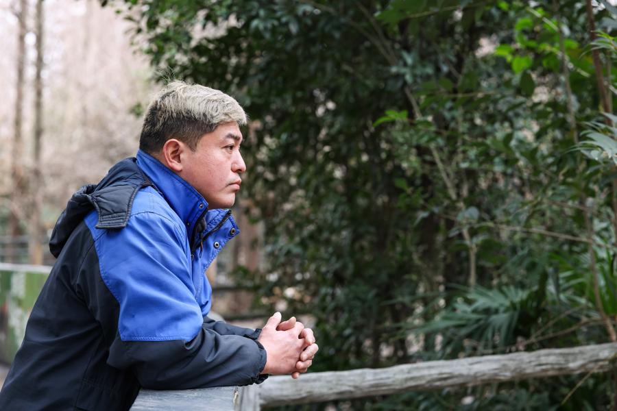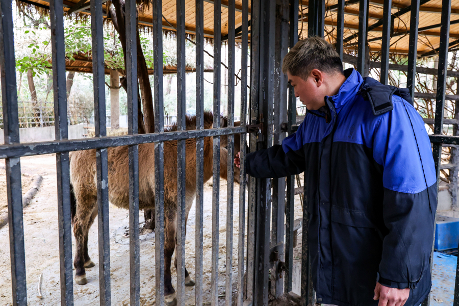 胡晓文从事野生动物饲养工作已九年,在食草动物园负责野马的饲养管理也有四年多。春节期间游客量大增,饲养员的职责长期全年无休。